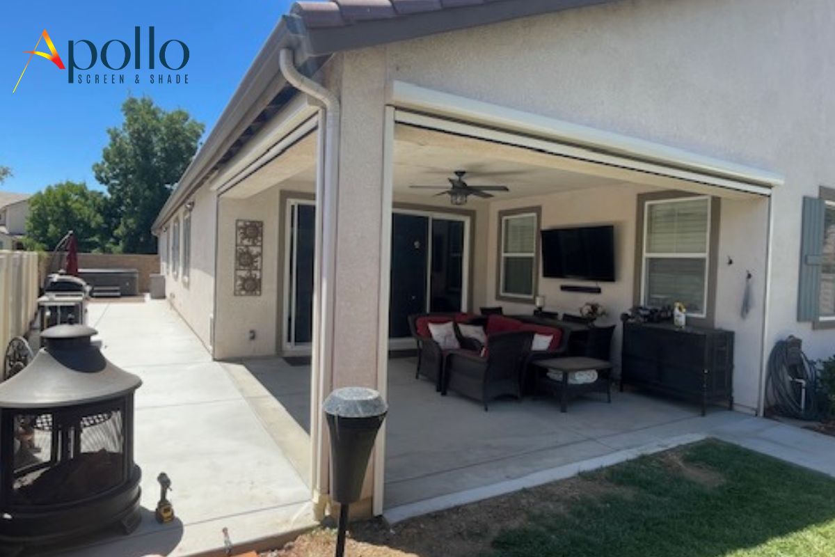 Beyond their practical benefits, Apollo motorized patio shades also add a timeless elegance to your home. As they age, the quality of the materials ensures that they maintain their color and structural integrity, preventing them from looking worn or outdated. In Menifee Hill, the installation showcased how these shades can seamlessly blend with the home’s architecture, enhancing its overall aesthetic appeal.
